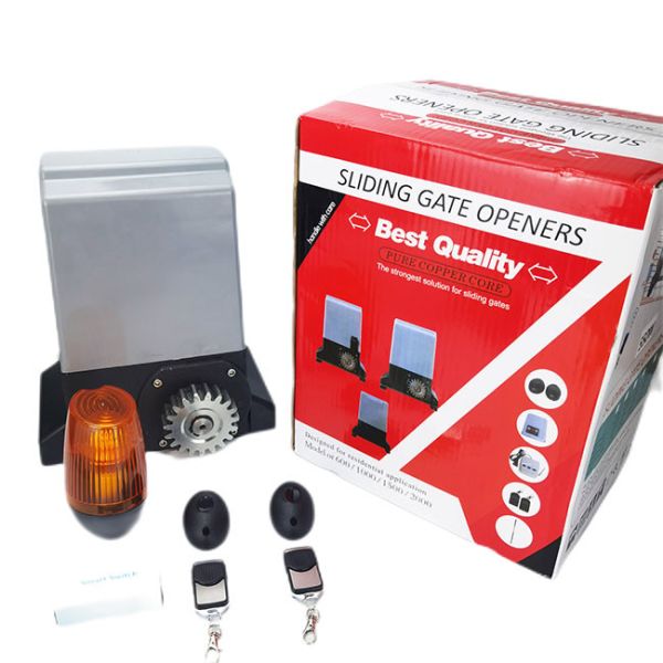 Gear Motor, 2x Remote Controls, Safety Sensors, Signal Lights, Rack and Pinion